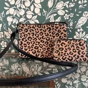 Elevate your style with this Kate Spade leopard print crossbody bag and matching pouch. Perfect for any occasion, this set combines fashion and functionality.