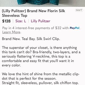 Lilly Pulitzer NWT Size XL Stunning Blue Patterned Sleeveless V-Neck Blouse Top