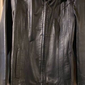 Easy 5th Size Large Women's Black Leather Jacket genuine leather. Excellent co
