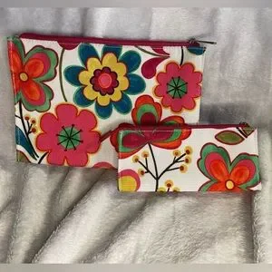 Clinique Colorful Floral Makeup Bag Pouches EUC