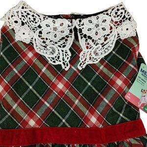 Merry Makings Dog Large Pet Cute Green and Red Tartan Plaid Holiday Dress