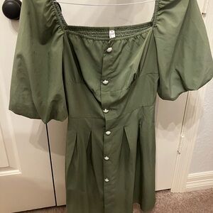 Stylish green dress with puff sleeves and button-down front. Perfect for any occasion.