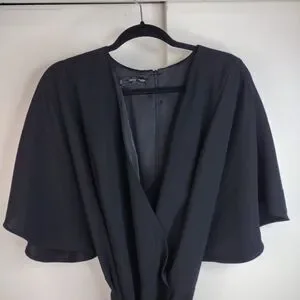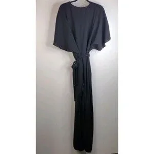 MNG V Neck Wide Leg Short Sleeve Jumpsuit Plus Size 3x Black Minimalist Belt
