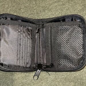 Stylish wallet with gold sequins and black trim. Features 'PINK' branding.