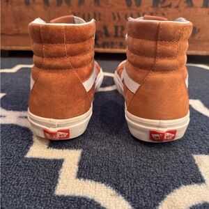 Experience the perfect blend of style and comfort with these Vans high-top sneakers. Crafted in a rich brown suede with contrasting white details, these shoes offer a timeless look. The durable construction and classic design make them a versatile addition to any wardrobe.