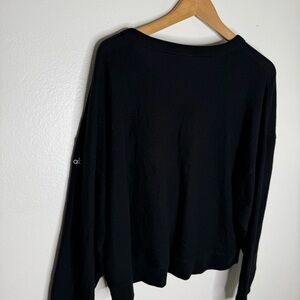 ALO YOGA Alolux Soho Cropped Henley Top Sz L Black V-Neck Fuzzy soft material