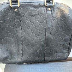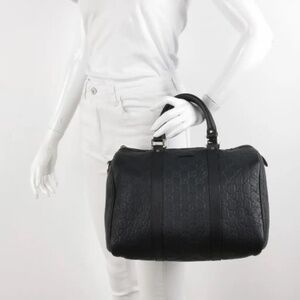 Gucci Micro Series Black Full Leather Embossed Boston Pillow Bag