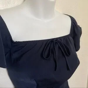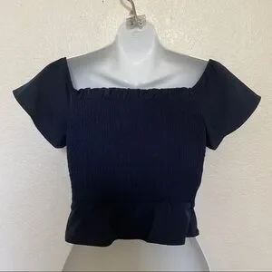 Revolve Superdown Navy Blue off the shoulder fitted crop top shirt Womens