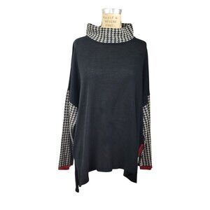 Roni Bis Black Houndstooth Color Block Lagenlook Mock Neck Pullover Sweater