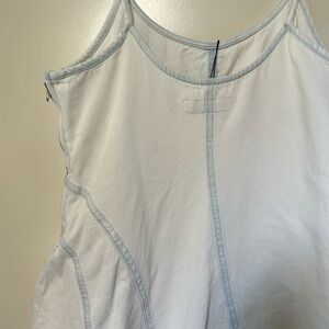 Elegant light blue denim maxi dress by Zara. Features a simple, flowing design. Perfect for casual or formal occasions.