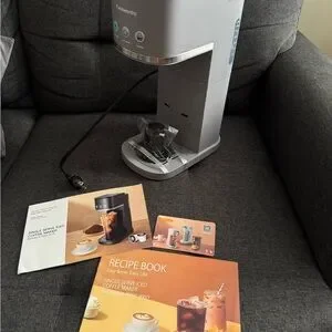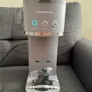 Famiworths coffee maker in sleek gray. Features options for over ice, hot brew, and strong coffee.
