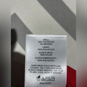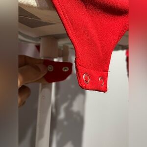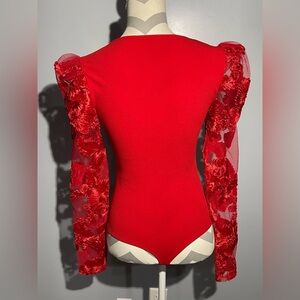 This stunning red top features elegant floral sleeves, perfect for any occasion. The vibrant color and unique design make it a standout piece in your wardrobe.