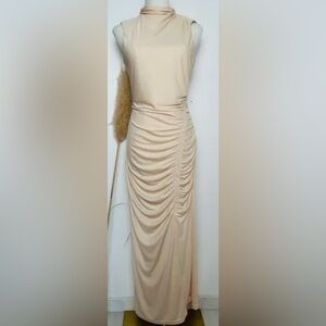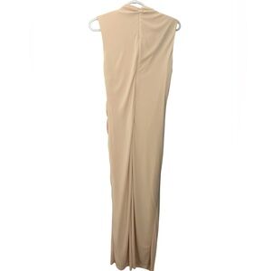 This elegant cream sleeveless dress is perfect for any occasion. Its sleek design and soft color make it a versatile addition to your wardrobe.