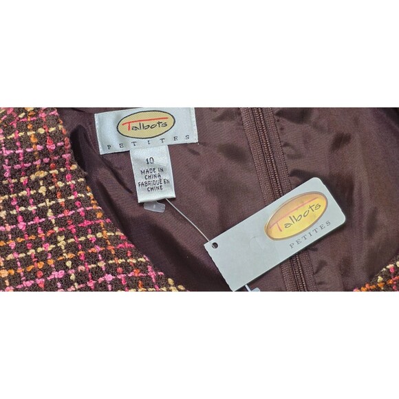 NEW Talbots Tweed Sheath Dress Womens Brown Pink Jumper Pockets 10P Old Money