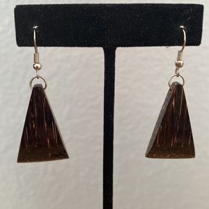 FINAL PRICE Vintage boho mod striated chonta wood triangular pendant earrings