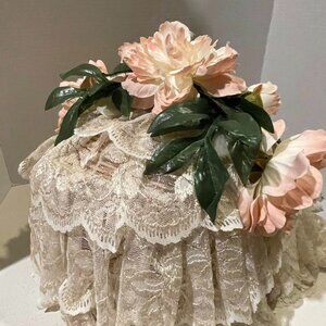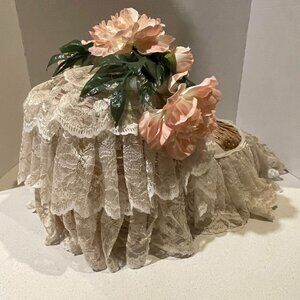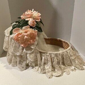 VTG 90s Handmade OAK Shabby Chic Cottagecore Wicker & White Lace Doll Bassinet
