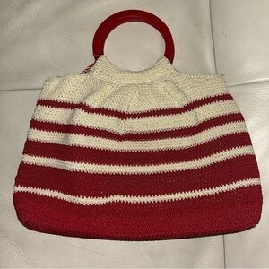 Vintage Liz Claiborne Crocheted Cotton Woven Purse Red Stripes
