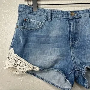 Zara Trafaluc Premium Wash Women's Lace Trimmed Blue Denim Shorts