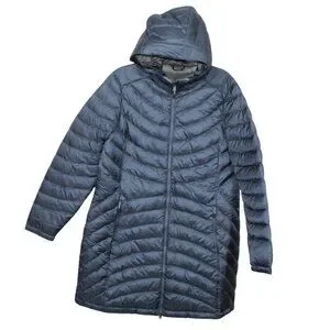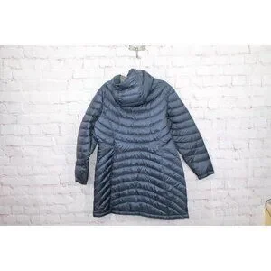 LL Bean Ultralight 850 Down Hooded Coat Three Quarter Length Mariner Blue XL