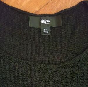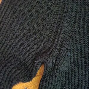 cute scoop neck sweater its longer covers hips i believe never worn too big for me. the fabric is silky looks like netting in some areas