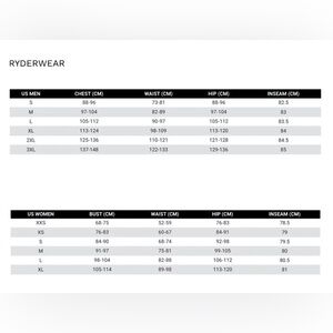 Ryderwear size chart added to the photos for sizing reference.