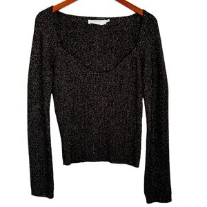 ASTR The Label Black Gold Square Neck Metallic Sweater