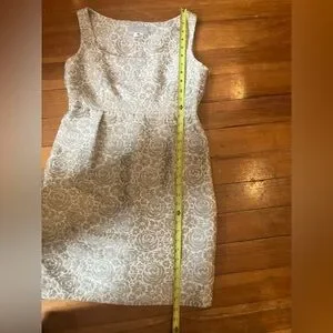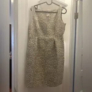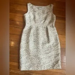 Barney’s New York Cream Floral Brocade Sleeveless Shift Dress, Size 8