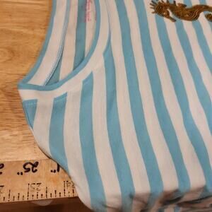 NWT Lily Pulitzer blue white striped seahorse gold sequin embellishment