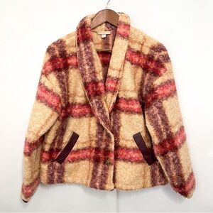 Knox Rose Sherpa Blazer Size Medium Plaid Colorful Jacket Fuzzy
