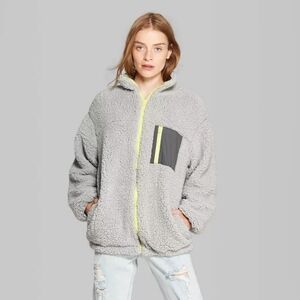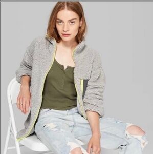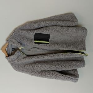 Wild Fable Sz XL Gray Fleece Sherpa Zip-Up with neon green accents