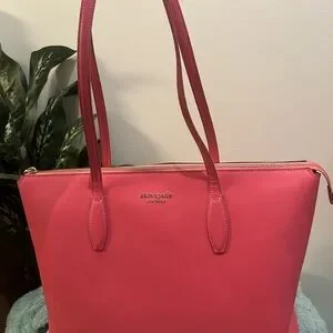 Chic and stylish, this Kate Spade pink tote bag is perfect for any occasion. Its vibrant color adds a pop of fun to your outfit.