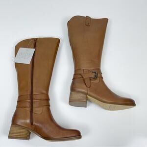 NEW Naturalizer Dev Leather Knee High Riding Boots Saddle Tan Wide Calf 7