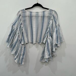 KIMCHI BLUE Urban Outfitters Raine Bell Sleeve Blouse Cropped Blue White Striped