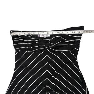 This Jennifer Lopez dress features a strapless sweetheart neckline, a maxi length, and a chevron pattern in black. Made from a lightweight and stretchy rayon fabric, the dress is perfect for various occasions such as travel, parties, or casual wear. With a pencil dress style, this dress is ideal for the summer, fall, and spring seasons, and is sure to make a statement with its trendy design and brand. Hand wash only to maintain its quality, this dress is a chic addition to any wardrobe. Measures a 30" chest and is 46" long. Please be aware that due to its fabric type, this item may attract lint or hair. It will be shipping from a smoke-free, pet-friendly environment. While we strive to ensure that all items are clean and in excellent condition before shipping, some residual lint or hair may be present. We recommend using a lint roller or brush to maintain the item's appearance. I appreciate your understanding.