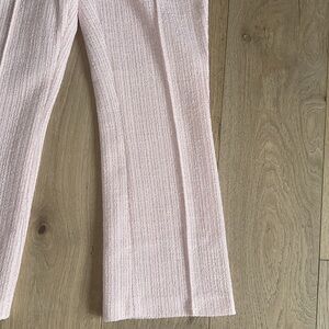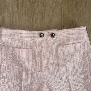 Stylish pink textured pants with front pockets and button detail. Perfect for a sophisticated look.