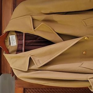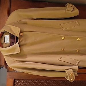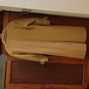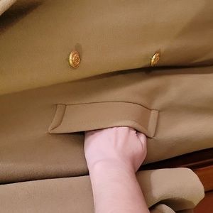 Vintage International Scene Long Tan Double Breasted Coat with Gold Buttons 7/8