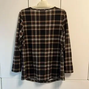 Stylish brown plaid top perfect for any occasion. Comfortable and chic design.