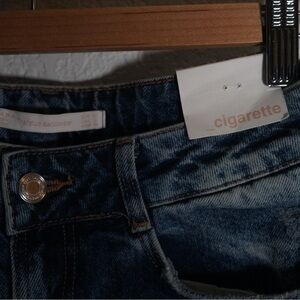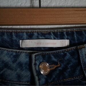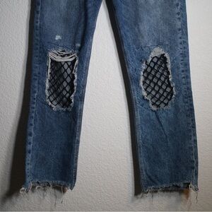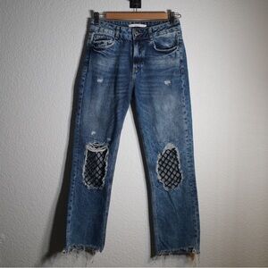 Zara TRF High Rise Distressed Raw Hem Denim Fish Net Ripped Knee Jeans Size 4