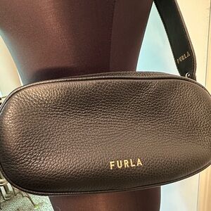 Furla Black Oval Crossbody Bag with Elegant Design and Reversible Strap
