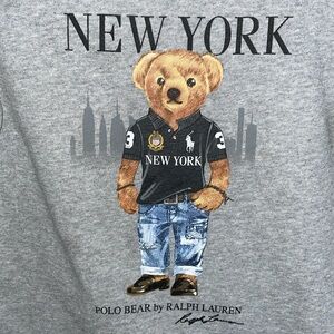 Stay stylish with this Ralph Lauren gray sweater featuring a charming bear print. Perfect for casual outings.
