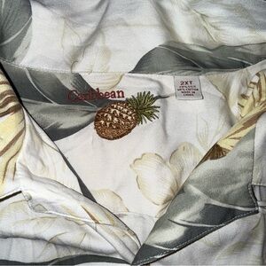 Mens Caribbean Beige Palm Leaves Silk/Cotton Hawaiian Shirt Wooden Button 2XL
