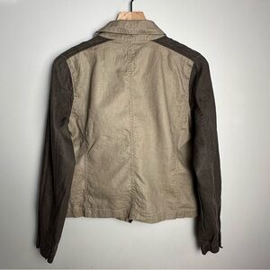 Eileen Fisher Two Tone Coated Organic Linen Asym Zip Jacket M Stone Brown/Gray.