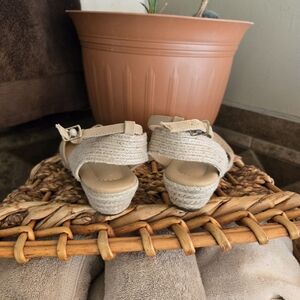 Step out in style with these chic beige espadrille flats. Perfect for any casual outing, these shoes offer comfort and elegance. Worn once! EXCELLENT CONDITION.