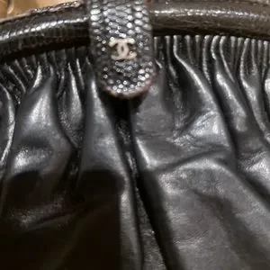 Snake skin on rim. The rim has minor damage. This bag is in vintage condition and so is the dust bag! Charming bag.
