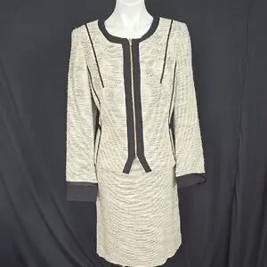 Calvin Klein Cream Black Sheath Jacket and Skirt Suit