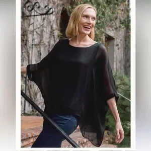 Beautiful Cobblestone Living Martina Top, delicate layers that cascade beautifully, asymmetrical hemline, black, size is “One Size Fits Most”