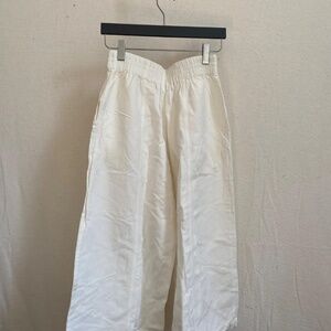 Wide leg pants with elastic waist and pockets in a cotton linen blend