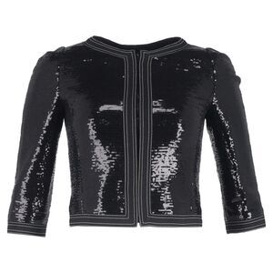 Chanel Zipped Sequined Cropped Blazer in Black Polyester