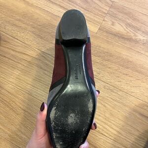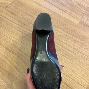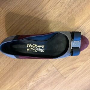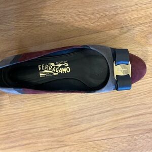 Salvatore Ferragamo Women's Vara Patchwork Burgundy and Gray Suede Pump Heel