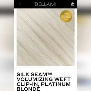 One set of Bellami silk seam clip-ins, used. Color number Platinum Blonde / #80: Their whitest blonde, cool-toned